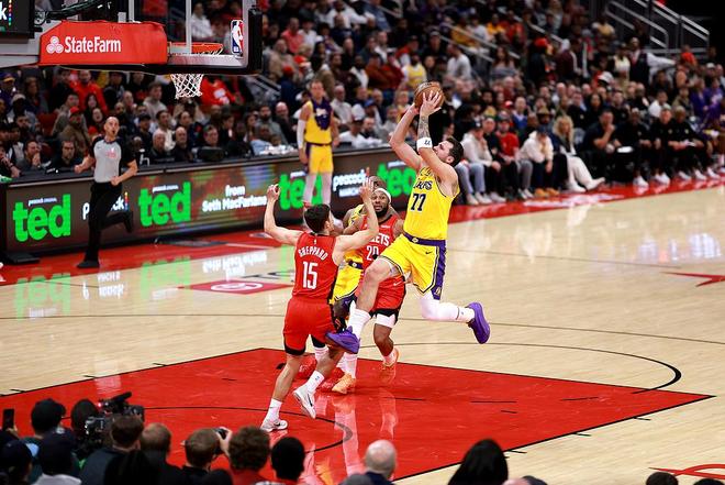 火箭隊的杜蘭特上半場得到16分和4個籃板,史密斯得到13分和4個籃板;湖人隊的東契奇得到23分,里夫斯得到8分。